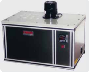 The oxidation stability tube heating baths concept illustrated below, is similar to a heated aluminum block represented in fig.3 except for the fact that it uses individual aluminum sleeves. Each sleeve is of a correct dimension to snugly fit a test tube of the specified requirements. A great advantage of the heated tube bath vs. aluminum block baths is the ability to individually offset the tube temperature vs. actual sample temperature. This very effectively eliminates the sample temperature non-uniformity as might be presented with heated aluminum block baths.